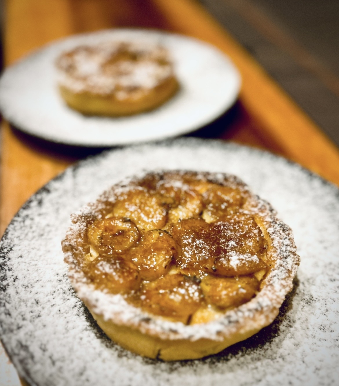 Elenco degli allergeniVoila une Tartelette gourmande aux saveurs locales. Une pinçée de Canelle, un zeste de citron vert, des bananes sucrée du marché, le tout flambé au Rhum de Guyane